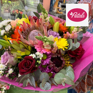 A bouquet with mixed roses,gebras,proteas ,Snaps,lilies and greens.
